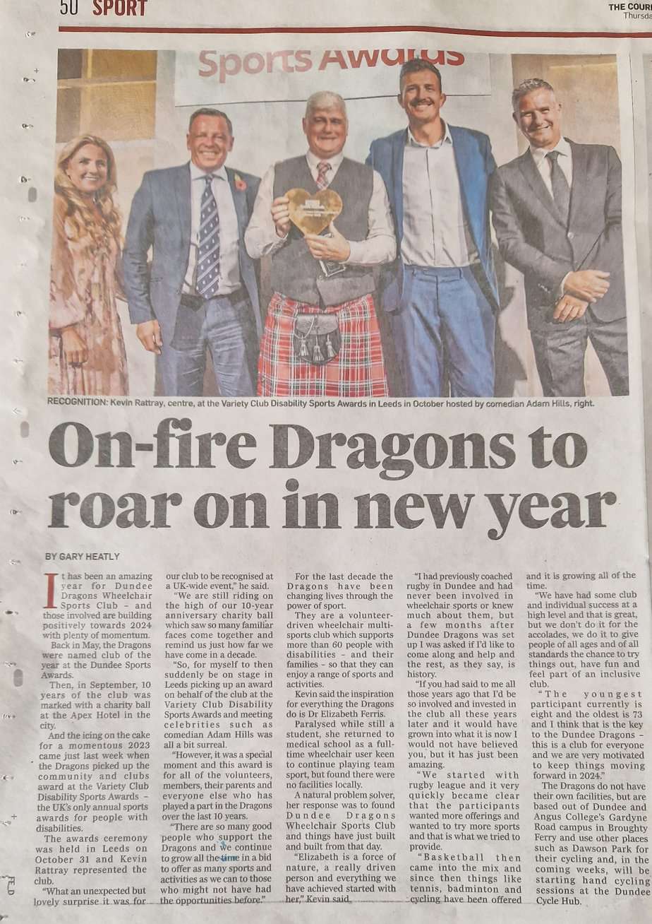 The City, DCDS, and everyone associated with the Dundee Dragons should feel rightly proud of what they have achieved and the recognition of their efforts over what has been a momentous 10 years of bringing sport and physical activities to people with disabilities across the city and beyond.