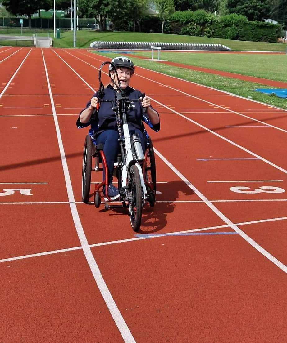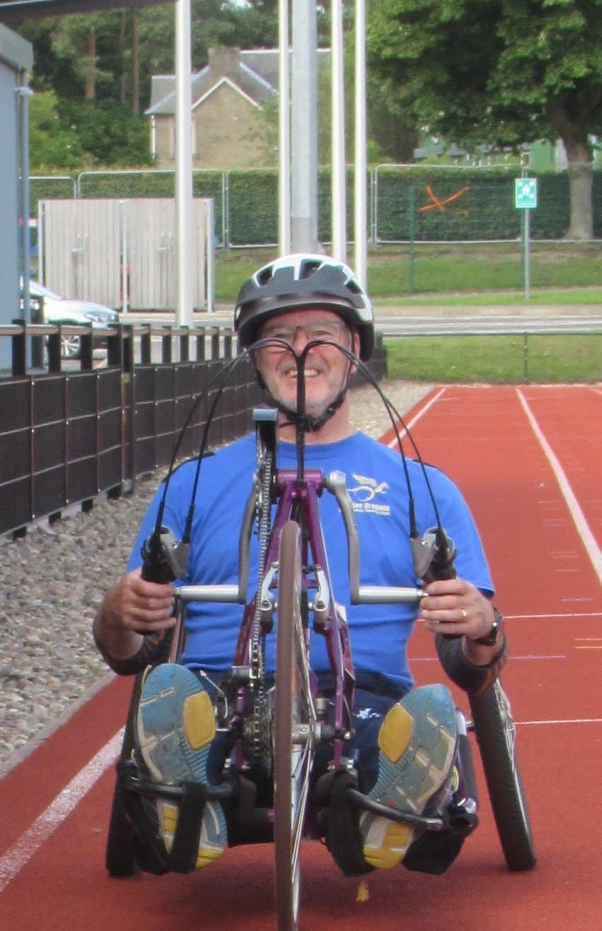 We had cyclists on the Velodrome, we had cyclists on the Athletics Track and to cap it all we had a presentation to Dundee Dragons Wheelchair Sports Club. Special thanks to Judith Wallace from Shell who came down from Aberdeen to make the presentation on behalf of British Cycling